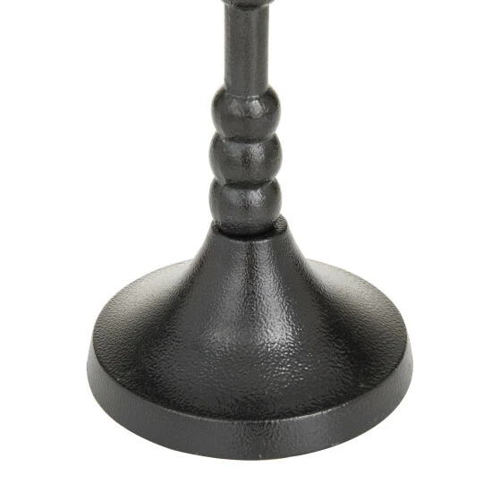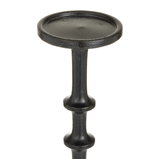 - Each candle holder features a textured black finish