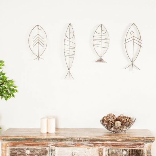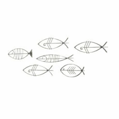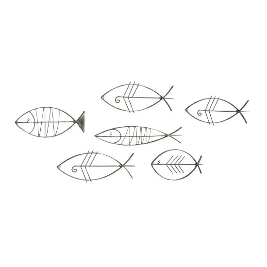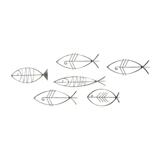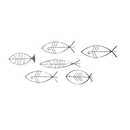 Deliver a touch of coastal charm to your wall setting with these stylized fish skeleton pieces. This set features six open-style fish figures crafted from iron, adorned with linear patterns and scroll details. Donning a sleek black finish, they make a great contrast to light spaces. Whether displayed individually or as a group, they are sure to create a striking focal point.