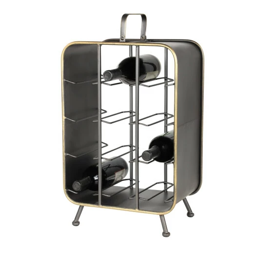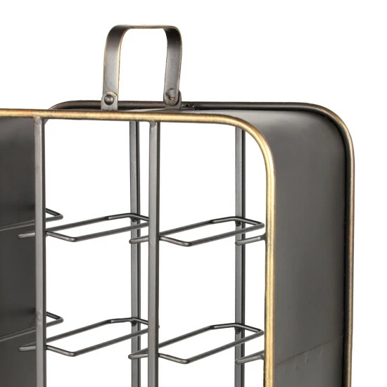 - This industrial wine holder features 12 bottle compartments and comes with a leg stands and a handles
