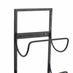 Organize your wine collection with a wall fixture that matches your industrial-themed interior. This black metal wine rack serves its purpose screwed on the wall. The traditional look on iron and the old school style handle give it a contemporary touch. This item comes shipped in one carton. Has pre-bored holes for an easy mounting via screws experience. Suitable for indoor use only. This item can hold 5 wine bottles. Designed with an industrial theme.