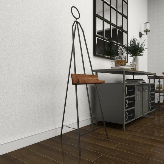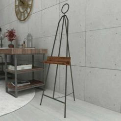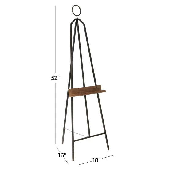 Put your show art and signs on display with this charming easel. Durable and sturdy, this easel lets you display your favorite things with ease, and with out overshadowing your piece. This decor’s industrial-inspired exterior makes them a focal point piece for the living room, art/crafting room, and house balconies. Designed with rubber stoppers at the base that prevent scratching furniture and table tops, as well as sliding around. This item ships in 1 carton. Suitable for indoor use only. Item has max weight of 10 lbs. Designed with an industrial theme.