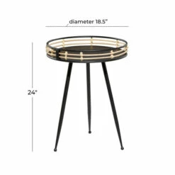 Your boho inspired living space will look marvelous with the addition of this boho style round black wood tripod side table. This wood crafted side table features a round design resembling the frame of an old snare drum complete with the side railings and drumstick style tripod legs. The pitch-black finish of the legs and the main table surface is complemented with a cream white accent on the side railings for a bit of extra style. This will look lovely when paired with other decorations in any room of your home. This item comes shipped in 1 carton. Suitable for indoor use only. Maximum weight limit is 50 lbs. Modern Design.