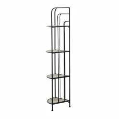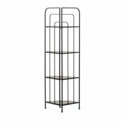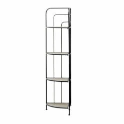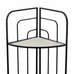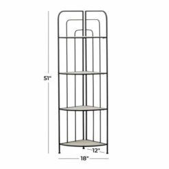 Store your baking supplies in an easy-reach and compact baker’s rack without compromising its sleek and classic design. Keep your home clutter free and utilize this space saving bakers rack for all your storage needs. Appreciate their design best against solid-colored backgrounds. This item features rubber stoppers to prevent scuffing and sliding. This item comes shipped in one carton. Suitable for indoor and outdoor use. It comes with 4 wooden shelves. Modern design. Maximum weight limit is 40 lbs.. Modern style inspired by a minimalistic design with clean lines and angular structures. This home decor is crafted with metal and wood for a solid and durable form. This backer’s rack highlights a black matte frame with natural wood brown shelves. A compact and chic storage rack dominates the style of this corner baker’s rack. This item measures 18″L x 12″W x 51″H and weighs 10 lbs