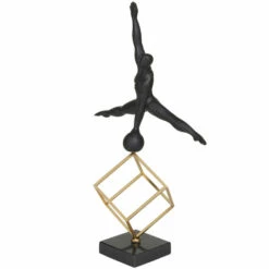 - Spectacular black acrobatic sculpture features a chiseled male body gymnast balancing on a cube with the left hand holding a ball and the right hand raised in the air