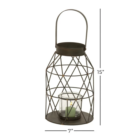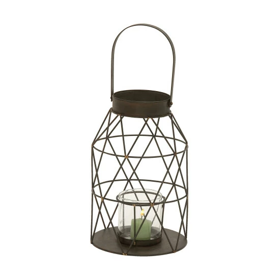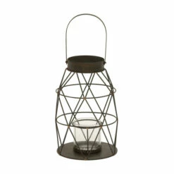 Infuse your space in the romantic candlelight glow that emits from this geometric design candle holder. This piece is a great addition to any industrial-inspired interior and will surely complement your existing home decors. With its black metal cage with geometric pattern, clear glass votive candle holder, and convenient handle, this candle holder works beautifully on any mantel or accent table. Made of iron and glass, this piece provides solid construction and is perfect for creating an elegant adornment or centerpiece for a festive celebration. Delight your guests and make any occasion extra special by adding a lighted candle to this stunning black lantern candle centerpiece.•Made of iron and glass•Features a black metal wire cage lantern with a small clear glass votive candle holder inside.•The cage is designed with a geometric pattern.•Comes with a small opening and an arched handle.•A geometric candle lantern that is great for homes with industrial interior.