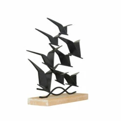 - Soft sheen black finish highlights this flying birds sculpture set on a natural wood brown base