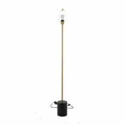 - Soft sheen black and metallic gold finish highlights this floor lamp