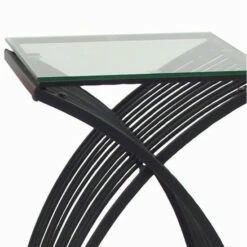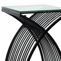 - This pool lounge chair features an elegant metal work on both the table and chairs. The chairs are topped with soft fabric cushioning for superior comfort while the table features a nice clean glass surface for class