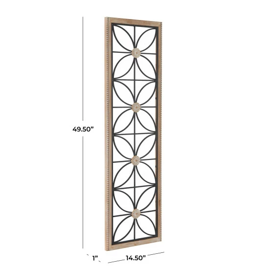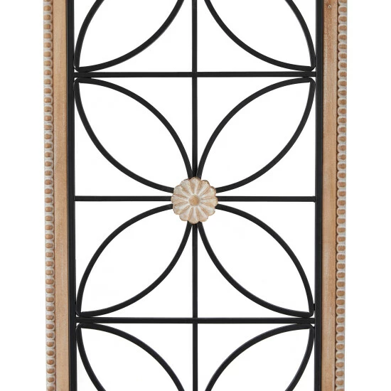 - Taking inspiration from a windowpane, this metal wall panel uses a floral design as its focal point with carved wood frame