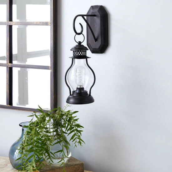 ย Use this LED wall sconce to add light and industrial style to your entryway. Create an excellent focal point on your walls by pairing a wall sconce with some cute accent tables. Whether adding light or adding ambience, these wall sconces look great in hallways, living rooms, and even bedrooms. The lamp is powered by two AA batteries not included; the battery box is on the back. Comes with a long-lasting, integrated LED bulb. This is an LED wall sconce and does not hold candle. This item comes shipped in one carton. Hardware on back allows for easy hanging. Suitable for indoor use. On/off switch on bottom. Designed with an industrial theme.