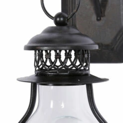 - ย This wall sconce lighting features a classic lantern shape and elegant backboard