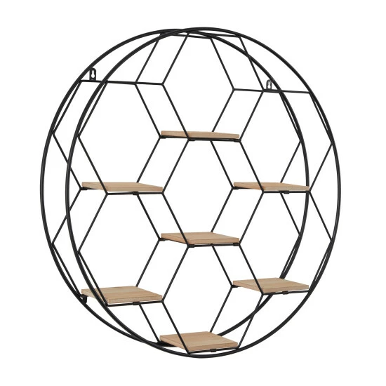 - Honeycomb frame pattern features a 2D look for this industrial wall shelf