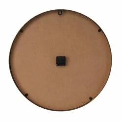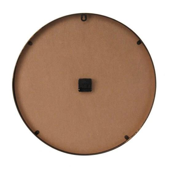 - A round modern wall clock constructed of robust and long-lasting iron and tempered glass materials