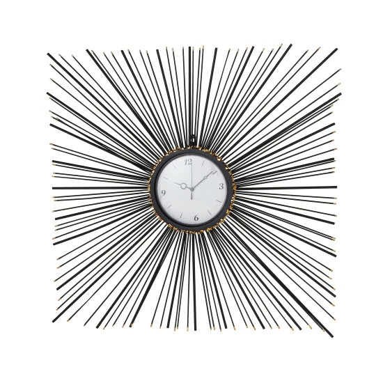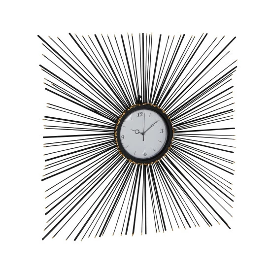 This charming wall clock will make a great addition to any contemporary themed space. Designed with a round, white-finished clock face and black clock markings, this wall clock flaunts a rectangular sunburst-patterned frame made from quality iron. It also comes with a black frame finish that brings a sleek and sophisticated contrast to any light colored decor and wall surface. Serving both functional and decorative purposes, this wall clock will make a home decor you’ll love for years.