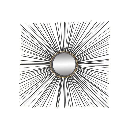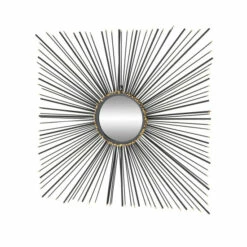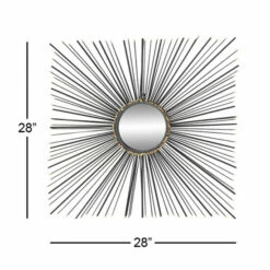 Bring contemporary elegance to your interior with this exquisite wall mirror from Studio 350. This piece comes with a smooth round glass mirror encased in a sunburst-inspired square frame crafted from iron. Its sleek black finish creates a lovely dark contrast to any light-colored space, while its sunburst frame pattern adds texture and dimension to your walls. Get this wall mirror now and enhance the look of your empty walls!