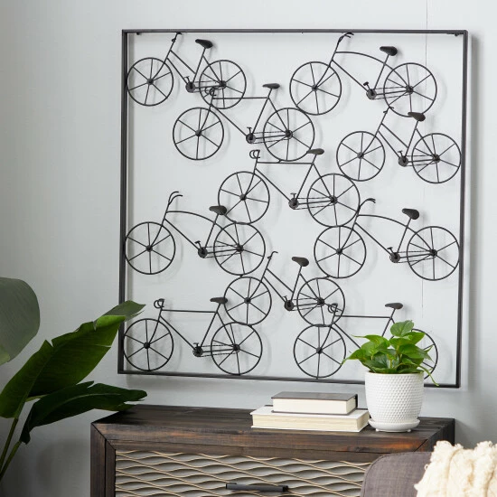 This beautiful iron bicycle wall art adds dimension and texture to a muted interior, be it a bedroom, an entryway, or a living room. Its design is industrial yet artistic,—the connecting lines exude chic modernity and the black accent adds the traditional glamorous touch—making it a timeless and irresistible addition to one’s living space. Use this 32″ X 32″ wall decor in place of a large mirror to create the illusion of a huge space in a small room.