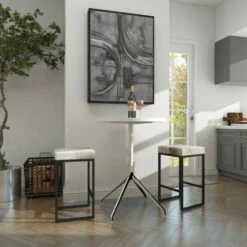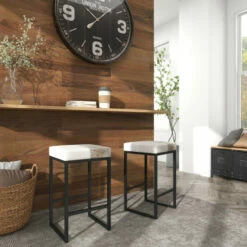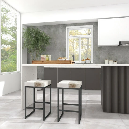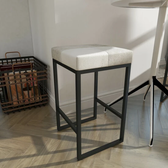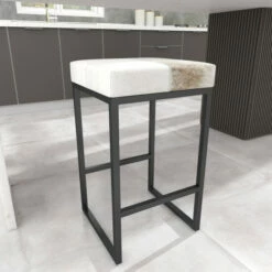 Make memories and laughter in the kitchen as you sit pretty in this stylish bar stool. Find comfort in our counter stool featuring eye catching design and durable structure. Easily goes with neutral and pastel-painted console or dining tables. This item ships in 1 carton. A leather hide seat cushion that measures approximately 3″. Suitable for indoor use only. Leather and hair on hide are natural products, and therefore no two will be alike. There may slight variations in pattern, natural blemishes, colors, and overall aesthetic of the product. Maximum weight limit is 250 lbs.. Made in India. Industrial style.