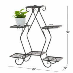 - Plant stand measures 27″L x 10″W x 31″H and weighs 9 lbs.