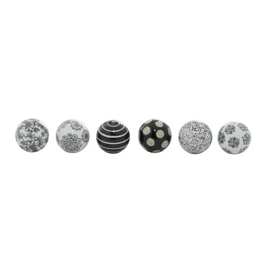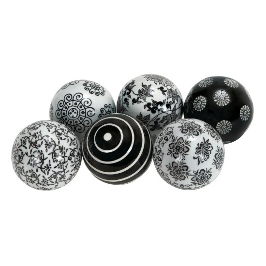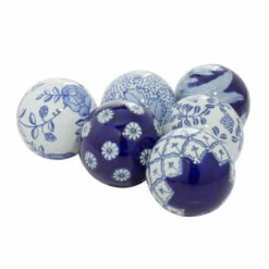 Add the orbs to a vase or basket on your end table. Add color and textured to any vase or decorative bowls with these fillers to enhance your living space. Round with floral illustrations and white floral and stripes detail. This item ships in 1 carton. Add color and textured to any vase or decorative bowls with these fillers to enhance your living space. Suitable for indoor use only. This set includes 6 decorative orbs. Traditional theme.