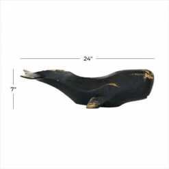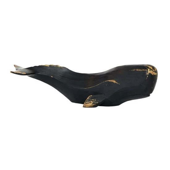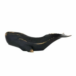 Black whale sculpture can blend well with traditional inspired living spaces. Let these accent pieces provide a sense of style to your home atmosphere by displaying them on top of a shelf, countertop, mantel, or an accent table. An artistic display to showcase your personality and enhance the look of any open table top space. Item ships in 1 carton. Due to the handmade nature of this item, no two will be alike, there will be slight differences in shape, size, and color. Suitable for indoor use. Coastal style.