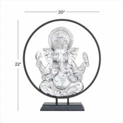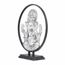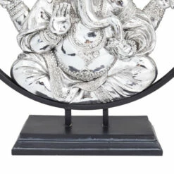- This enchanting Lord Ganesh sculpture features a metallic silver figure and a black metal ring base