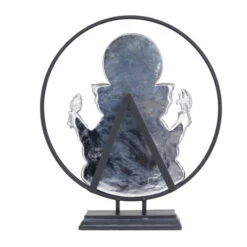 - This Lord Ganesh statue features a full metallic silver sculpture of him placed inside a round metal base standee