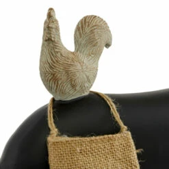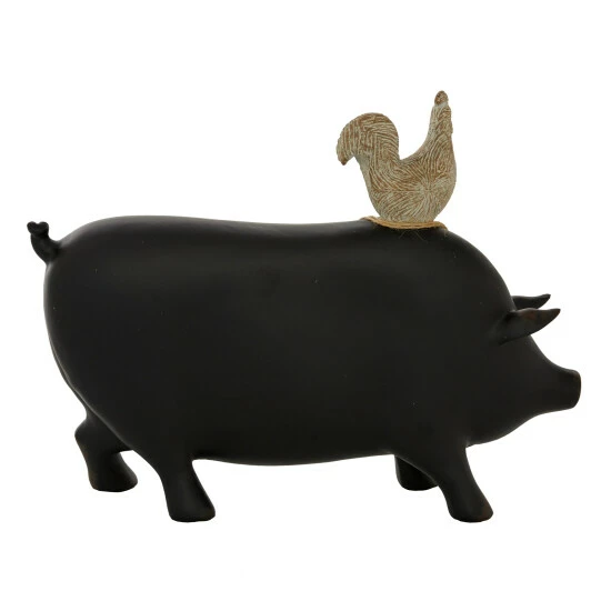 - Black pig, distressed white finish over chicken sculpture, and natural burlap sack