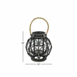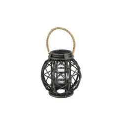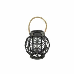 - Strong rattan strips hand molded into place create this decorative lantern’s round body