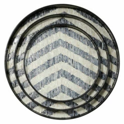 - These one-of-a-kind capiz shell trays showcase a stunning chevron inner tray pattern and a matte black wooden base with handles