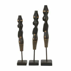 Create a ravishing Native-inspired tabletop decor as you place these sculptures on top of your wooden desks, glass display cabinets, and wall shelves. A sophisticated sculpture with an antique inspired colors adds dimensions and inspiring mood to any space. An artistic display to showcase your personality and enhance the look of any open table top space. Bohemian style. These sculptures come as a set of 3. Suitable for indoor use. Made in Indonesia. This item is shipped in one carton.