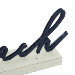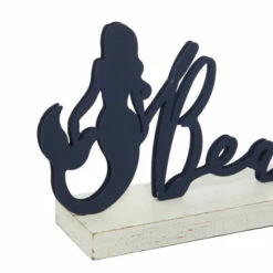 This black beach table decor is a great addition to your home decoration and will surely complement your existing furniture. It is a great accessory for a wide array of home designs, including coastal. This accent piece features a mermaid embellishment and cursive “beach” sign in black finishing. It also contains a white rectangular base for stability. Made of wood and iron, this home decor provides solid construction and is perfect for creating an elegant adornment for your accent table, countertop, shelf, or mantel. This item ship in one carton