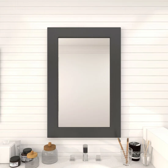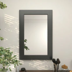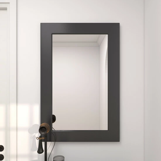 - For a striking yet simple statement piece on your wall, this mirror flaunts a bold black frame