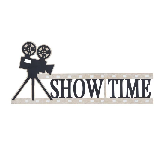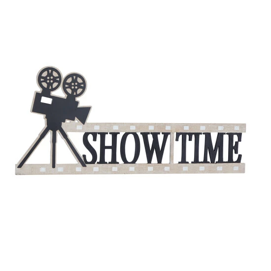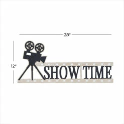 Place this on any blank wall space adding both texture and depth to your home. Give your home a premium look with this movie wall decor that will provide your wall a fine decoration worth to your place. This item ships in 1 carton. Item comes with keyhole hangers at the back for easy and secure hang. Suitable for indoor use only. Industrial style. A wall decor showcasing a “Show Time” sign.