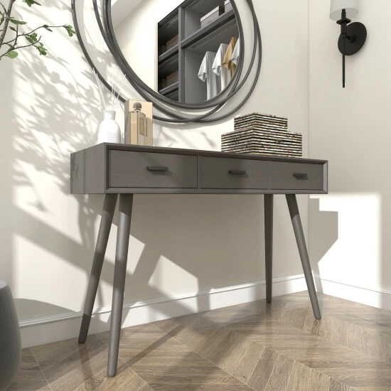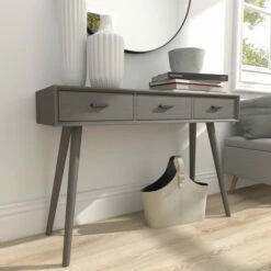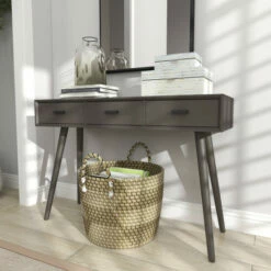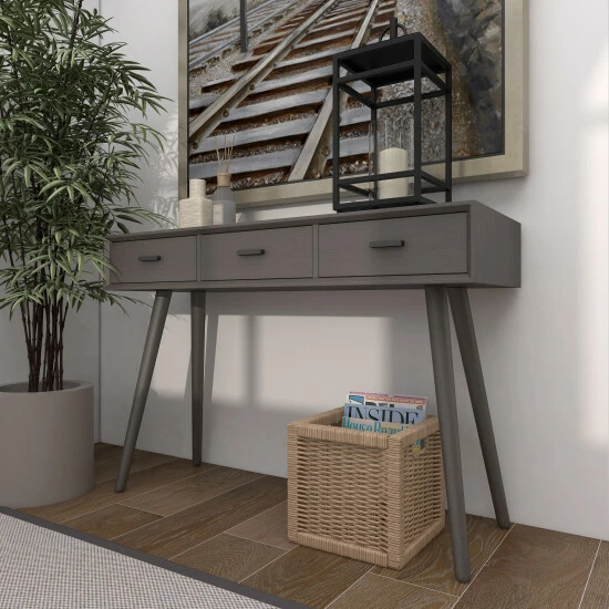Use this long console table to add style and storage options to a living room or entryway. Bring a finishing touch to your home with an inviting appeal with this console table. A sturdy and long lasting construction that for a years of enjoyment. This console table features 3 drawers that are 12.13″ inches deep. Suitable for indoor use only. Some assembly required. Maximum weight limit is 100 lbs. Modern design.