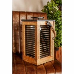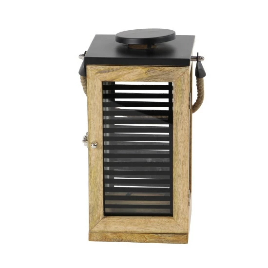 Incorporate a touch of transitional charm into your home ensemble with this stunning candle lantern from Studio 350. Boasting a rectangular brown frame with grilled side panels, a square black lid, a round black ventilator, and a brown handle, it makes a fine centerpiece for your dining table, shelf or console. Fill it with your favorite candle, twinkle lights, or other decorative items to create an artful statement.