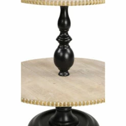 - 2-Tier tray with decorative wood beads and a whitewash finish over the light beige wood