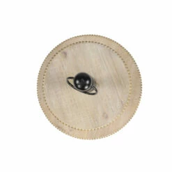 - Round wood trays made from solid Chinese fir wood, iron ring at the top and iron center post and base