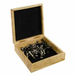 Showoff your competitive side and keep your guest entertain with this game set. A sleek and sophisticated display with a playful touch. Regal is the name of the game with this classic chess set. Its design makes for an unapologetically bold table decor while creating a sophisticated and stylish narrative inside a living space It also serves as great entertainment for guests. This item ships in 1 carton. Wood game set makes a great gift for any occasion. Suitable for indoor use only. Made in India. Traditional theme.