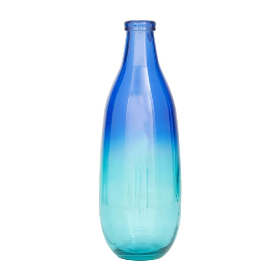- This slim bottle vase features a gradient ocean blue to sky blue glass finish