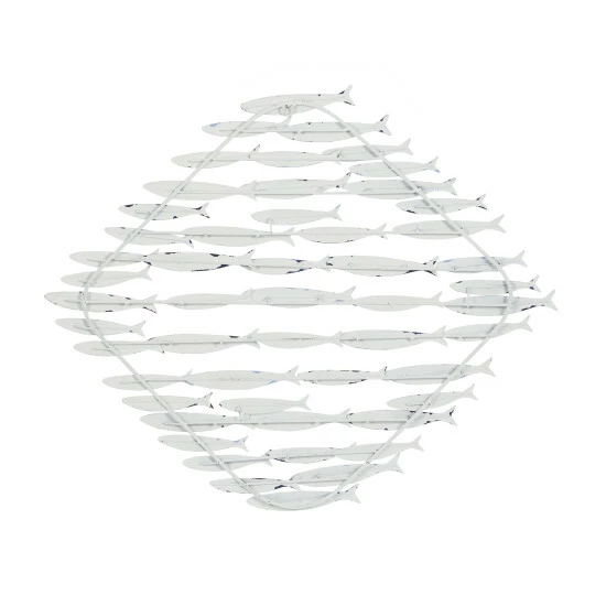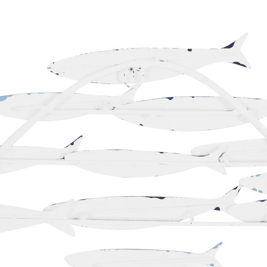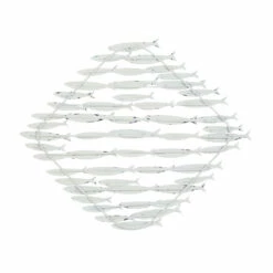 Create an excellent focal point on your walls paired with some cute accent tables, and level up your home with this amazing wall decor . It makes a great centerpiece over your sofa or in your dining room . This coastal style wall decor will work well in any wall of your laid-back living space. Designed to form a diamond silhouette using metal materials. Easily hanging using hanging hardware on the back. Suitable for indoor use only. Coastal design. Easily hanging using hanging hardware on the back. This item comes shipped in one carton.. Features a coastal style inspired design for a laid-back vibe. This chill wall decor is made from shaped metal materials. The wall decor comes in various shades of blue with a hint of white. This wall decor features a school of fish in a diamond formation going to the same direction. Each item measures 21.63″ x 26.50″ x 1.00″, and weights 2.38 lbs