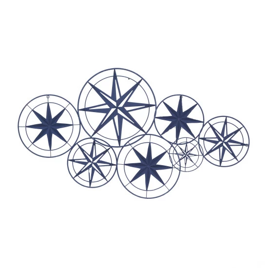 Give your space a focal point with this compass wall decor that will provide your wall a fine decoration worth to your place. Create an excellent focal point on your walls paired with some cute accent tables, and level up your home with this amazing wall Decor. Place this on any blank wall space adding both texture and depth to your home. This item comes shipped in one carton. The metal material of this accent piece is welded and carved to form multiple designs of compass in varying sizes. Item comes with metal loops at the back for easy and secure hang. Suitable for indoor use only. Contemporary Design.. These pieces are designed to offer any contemporary themed home a final touch.. A contemporary wall decor that is crafted of solid and lasting metal material. This compass style wall decor accentuates blue finish that gives a whimsical vibe to your place. This metal wall decor features round compass style accents attached to each other and comes in blue and white finishes. This item measures 48″L x 1″W x 26″H and weighs 4 lbs