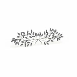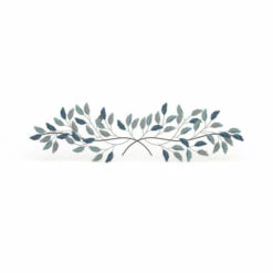 Use this tree branch decor to add beauty to a traditional style room. The elegant iron branches spread out horizontally to a width of 53 inches. Each branch ends with textured leaves that have realistic shapes and grooves. This metallic leaf wall art features various shades of blue that are as soothing as they are charming. Item features metal loop for easy and secure hang. Suitable for indoor use only. This item comes shipped in one carton.