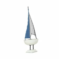Display this sailboat sculpture as accent decor on your bookshelf or centerpiece coffee table to complete your nautical-themed interior design. Create a balance surface space and added dimensions with this beautifully crafted sculpture. An artistic display to showcase your personality and enhance the look of any open table top space. Rubber stoppers on base prevent scuffing and sliding. Shipped in one carton. Suitable for indoor use only. Nautical design.