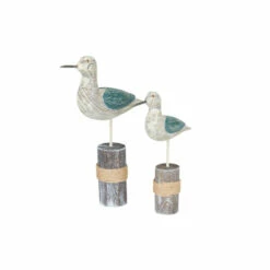 - This coastal animal sculpture set features bird figures with detailed characteristics supported cylindrical wooden bases with rope accents