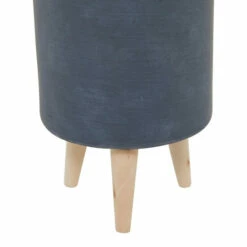 - This large artificial plant decor features a realistic green and brown plant body with mixed colored stones and a textured matte blue pot with tan finished rubber wood legs