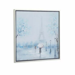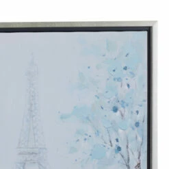 Give your home spaces a delicate exhibit with this framed canvas wall art decor displayed on your living room or bedroom walls. This wall art exude natural beauty and sophistication in both color and composition. Showcase your personality and turn your walls into an art gallery with this impression wall art. This item comes shipped in one carton. Canvas painting is firmly encased in sturdy resin frame. Easy to hang with 2 back sawtooth hooks. Suitable for indoor use only. Transitional design.. Transitional is mixture of classic and timeless design for a well established interior design. This home decor is crafted with resin and canvas for a solid and durable form. This canvas wall art highlights a frosted-toned painting dominated with blue hues for a calm and relaxing look. A duo of muted ebony and silver metallic frame complements the soft impasto painting technique on this wall art. This item measures 24″L x 1″W x 24″H and weighs 2 lbs