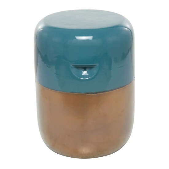 Show off this versatile accent table and stool on your living room, kitchen, hallway area, and home office. Bring a finishing touch to your home with an inviting appeal with this beautifully crafted accent table. A compact friendly table providing you with additional storage space any where in your home. Suitable for indoor use. Maximum weight limit is 250 lbs. Contemporary design.. Crafted in a contemporary style that fits great in most homes. This round accent table is made of pure stoneware. This two-tone accent table showcases a high-shine turquoise and golden brown ceramic finish. This stylish accent table doubles up as a round stool and features a unique two-tone exterior design with carved out slot design for easy carry. This item measures 13.3″D x 18″H and weighs 20 lbs