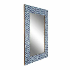 - This rectangle bone wall mirror carries a wooden frame accented with a mosaic of blue and white animal bone fragments
