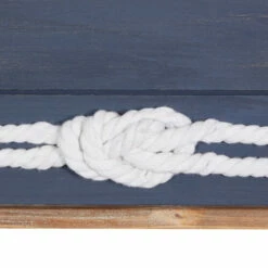 - A blue finish and white typography give the sign a distinctly coastal aesthetic