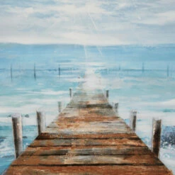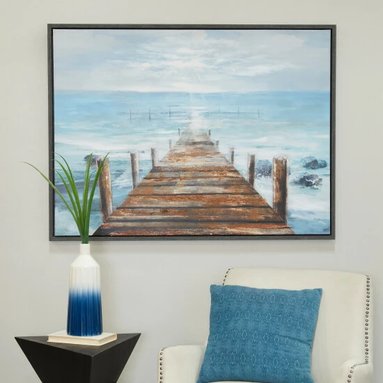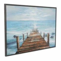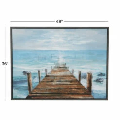 - Just like the early morning view of a misty shore, this framed wall art depicts a dock painting being greeted by the glimmering horizon